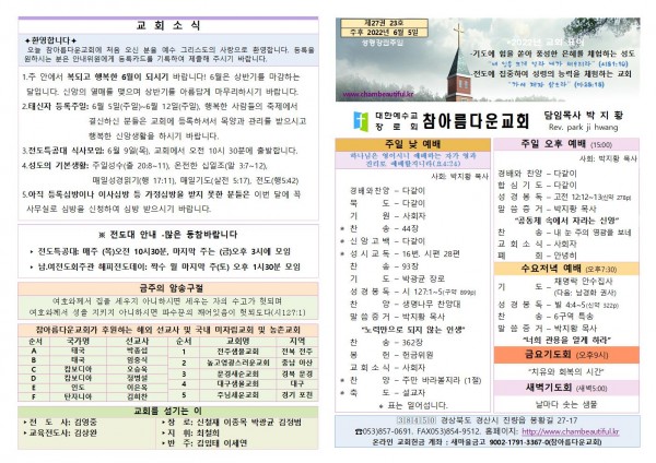 주보-2022년 6월 5일 페이지 정보 작성자 참아름다운교회 댓글 0건 조회 4,109회 22-06-04 14:03 본문 주보-2022년 6월 5일 목 록 답 변 이전글주보-2022년 6월 12일 22.06.11 다음글주보-2022년 5월 29일 22.05.28 댓글목록 댓글목록 등록된 댓글이 없습니다.