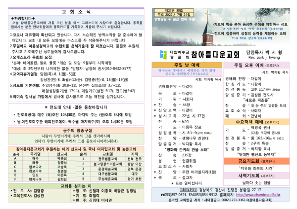 주보-2022년 7월 24일 페이지 정보 작성자 참아름다운교회 댓글 0건 조회 4,029회 22-07-22 15:37 본문 주보-2022년 7월 24일 목 록 답 변 이전글주보-2022년 7월 31일 22.07.30 다음글주보-2022년 7월 17일 22.07.16 댓글목록 댓글목록 등록된 댓글이 없습니다.