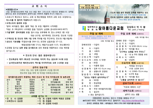 주보-2022년 8월 21일 페이지 정보 작성자 참아름다운교회 댓글 0건 조회 4,028회 22-08-20 20:21 본문 주보-2022년 8월 21일 목 록 답 변 이전글주보-2022년 8월 28일 22.08.27 다음글주보-2022년 8월 14일 22.08.13 댓글목록 댓글목록 등록된 댓글이 없습니다.