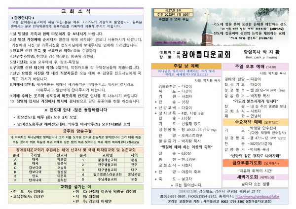 주보-2022년 1월 30일 페이지 정보 작성자 참아름다운교회 댓글 0건 조회 4,667회 22-01-29 17:04 본문 주보-2022년 1월 30일 목 록 답 변 이전글주보-2022년 2월 6일 22.02.05 다음글주보-2022년 1월 23일 22.01.22 댓글목록 댓글목록 등록된 댓글이 없습니다.
