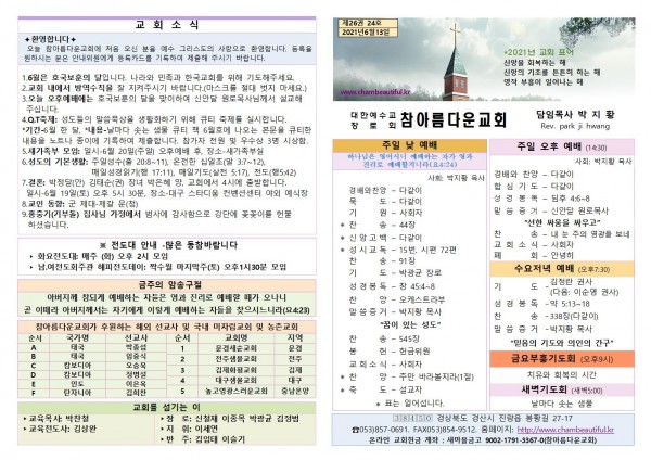 주보-2021년 6월 13일 페이지 정보 작성자 참아름다운교회 댓글 0건 조회 5,320회 21-06-12 12:53 본문 주보-2021년 6월 13일 목 록 답 변 이전글주보-2021년 6월 20일 21.06.19 다음글주보-2021년 6월 6일 21.06.05 댓글목록 댓글목록 등록된 댓글이 없습니다.