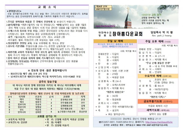 주보-2021년 7월 11일 페이지 정보 작성자 참아름다운교회 댓글 0건 조회 5,310회 21-07-10 13:28 본문 주보-2021년 7월 11일 목 록 답 변 이전글주보-2021년 7월 18일 21.07.17 다음글주보-2021년 7월 4일 21.07.03 댓글목록 댓글목록 등록된 댓글이 없습니다.