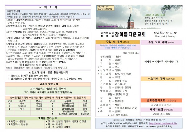 주보-2021년 1월 10일 페이지 정보 작성자 참아름다운교회 댓글 0건 조회 6,182회 21-01-09 12:11 본문 주보-2021년 1월 10일 목 록 답 변 이전글주보-2021년 1월 17일 21.01.16 다음글주보-2021년 1월 3일 21.01.03 댓글목록 댓글목록 등록된 댓글이 없습니다.