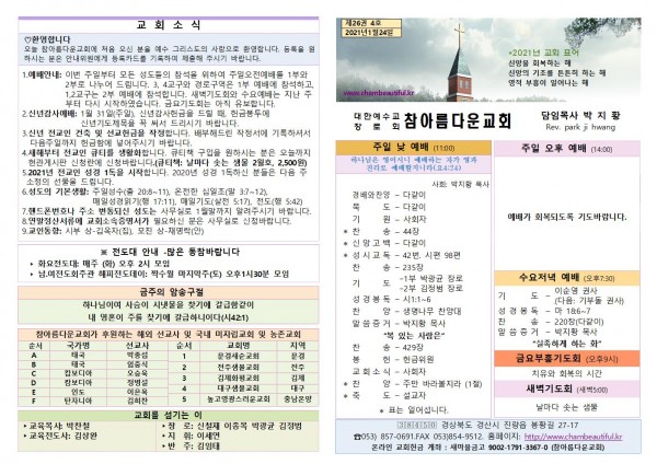 주보-2021년 1월 24일 페이지 정보 작성자 참아름다운교회 댓글 0건 조회 6,027회 21-01-23 13:54 본문 주보-2021년 1월 24일 목 록 답 변 이전글주보-2021년 1월 31일 21.01.30 다음글주보-2021년 1월 17일 21.01.16 댓글목록 댓글목록 등록된 댓글이 없습니다.