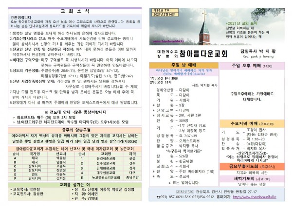 주보-2021년 2월 14일 페이지 정보 작성자 참아름다운교회 댓글 0건 조회 5,766회 21-02-14 12:57 본문 주보-2021년 2월 14일 목 록 답 변 이전글주보-2021년 2월 21일 21.02.20 다음글주보-2021년 2월 7일 21.02.06 댓글목록 댓글목록 등록된 댓글이 없습니다.