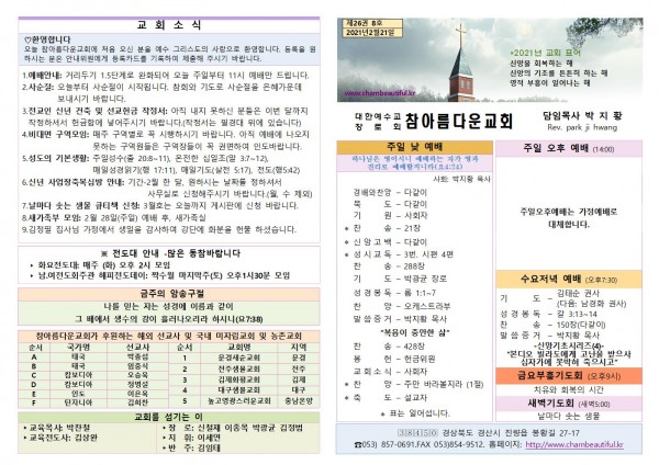 주보-2021년 2월 21일 페이지 정보 작성자 참아름다운교회 댓글 0건 조회 5,745회 21-02-20 13:58 본문 주보-2021년 2월 21일 목 록 답 변 이전글주보-2021년 2월 28일 21.02.27 다음글주보-2021년 2월 14일 21.02.14 댓글목록 댓글목록 등록된 댓글이 없습니다.