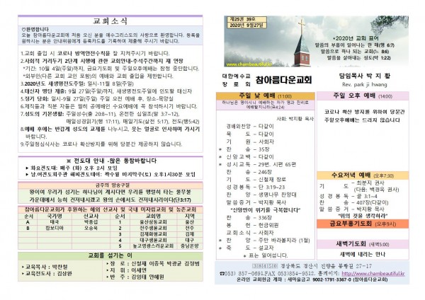 주보-2020년 9월 27일 페이지 정보 작성자 참아름다운교회 댓글 0건 조회 6,593회 20-09-29 14:36 본문 주보-2020년 9월 27일 목 록 답 변 이전글주보-2020년 10월 4일 20.10.03 다음글주보-2020년 9월 20일 20.09.19 댓글목록 댓글목록 등록된 댓글이 없습니다.