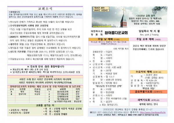 주보-2020년 10월 4일 페이지 정보 작성자 참아름다운교회 댓글 0건 조회 6,622회 20-10-03 12:00 본문 주보-2020년 10월 4일 목 록 답 변 이전글주보-2020년 10월 11일 20.10.10 다음글주보-2020년 9월 27일 20.09.29 댓글목록 댓글목록 등록된 댓글이 없습니다.