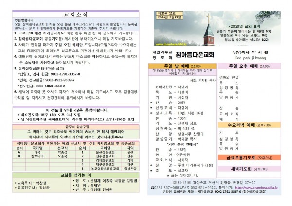 주보-2020년 3월 15일 페이지 정보 작성자 참아름다운교회 댓글 0건 조회 7,716회 20-03-18 16:33 본문 주보-2020년 3월 15일 목 록 답 변 이전글주보-2020년 3월 22일 20.03.21 다음글주보- 2020년 3월 8일 20.03.07 댓글목록 댓글목록 등록된 댓글이 없습니다.