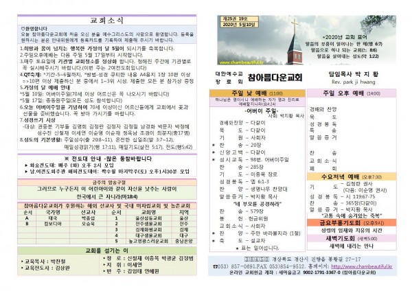 주보-2020년 5월 10일 페이지 정보 작성자 참아름다운교회 댓글 0건 조회 7,737회 20-05-09 13:44 본문 주보-2020년 5월 10일 목 록 답 변 이전글주보-2020년 5월 17일 20.05.16 다음글주보-2020년 5월 3일 20.05.02 댓글목록 댓글목록 등록된 댓글이 없습니다.
