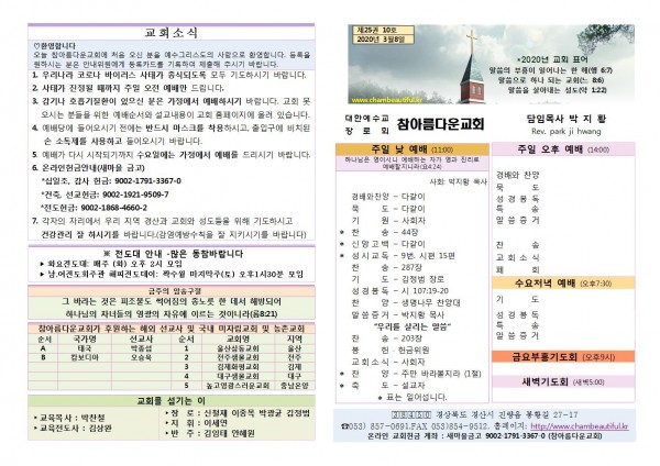 주보- 2020년 3월 8일 페이지 정보 작성자 참아름다운교회 댓글 0건 조회 7,900회 20-03-07 12:23 본문 주보- 2020년 3월 8일 목 록 답 변 이전글주보-2020년 3월 15일 20.03.18 다음글주보- 2020년 3월 1일 20.03.01 댓글목록 댓글목록 등록된 댓글이 없습니다.