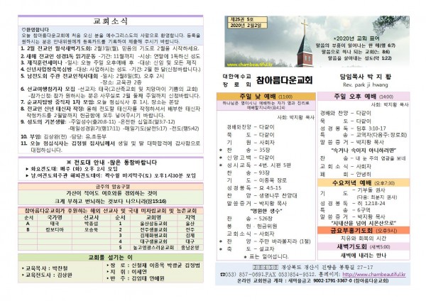 주보- 2020년 2월 2일 페이지 정보 작성자 참아름다운교회 댓글 0건 조회 8,441회 20-02-02 13:21 본문 주보- 2020년 2월 2일 목 록 답 변 이전글주보- 2020년 2월 9일 20.02.09 다음글주보- 2020년 1월 26일 20.01.26 댓글목록 댓글목록 등록된 댓글이 없습니다.