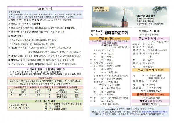 주보- 2019년 7월 28일 페이지 정보 작성자 참아름다운교회 댓글 0건 조회 9,950회 19-07-28 13:16 본문 주보- 2019년 7월 28일 목 록 답 변 이전글주보- 2019년 8월 4일 19.08.04 다음글주보- 2019년 7월 21일 19.07.26 댓글목록 댓글목록 등록된 댓글이 없습니다.