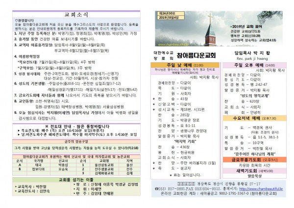 주보- 2019년 8월 4일 페이지 정보 작성자 참아름다운교회 댓글 0건 조회 9,772회 19-08-04 13:04 본문 주보- 2019년 8월 4일 목 록 답 변 이전글주보- 2019년 8월 11일 19.08.11 다음글주보- 2019년 7월 28일 19.07.28 댓글목록 댓글목록 등록된 댓글이 없습니다.
