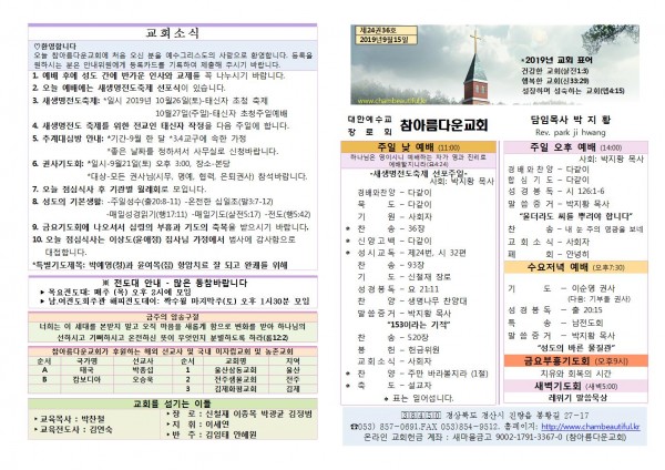 주보- 2019년 9월 15일 페이지 정보 작성자 참아름다운교회 댓글 0건 조회 9,503회 19-09-15 12:58 본문 주보- 2019년 9월 15일 목 록 답 변 이전글주보- 2019년 9월 22일 19.09.22 다음글주보- 2019년 9월 8일 19.09.08 댓글목록 댓글목록 등록된 댓글이 없습니다.