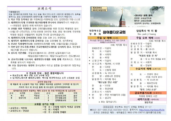 주보- 2019년 10월 13일 페이지 정보 작성자 참아름다운교회 댓글 0건 조회 9,483회 19-10-13 13:51 본문 주보- 2019년 10월 13일 목 록 답 변 이전글주보- 2019년 10월 20일 19.10.20 다음글주보- 2019년 10월 6일 19.10.06 댓글목록 댓글목록 등록된 댓글이 없습니다.