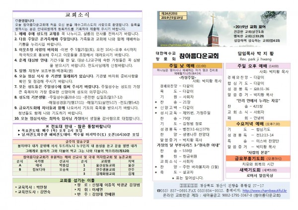 주보- 2019년 5월 19일 페이지 정보 작성자 참아름다운교회 댓글 0건 조회 10,647회 19-05-19 13:47 본문 주보- 2019년 5월 19일 목 록 답 변 이전글주보- 2019년 5월 26일 19.05.26 다음글주보- 2019년 5월 12일 19.05.11 댓글목록 댓글목록 등록된 댓글이 없습니다.