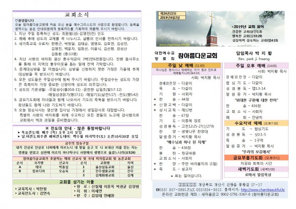 주보- 2019년 6월 2일 페이지 정보 작성자 참아름다운교회 댓글 0건 조회 10,650회 19-06-02 13:28 본문 주보- 2019년 6월 2일 목 록 답 변 이전글주보- 2019년 6월 9일 19.06.09 다음글주보- 2019년 5월 26일 19.05.26 댓글목록 댓글목록 등록된 댓글이 없습니다.