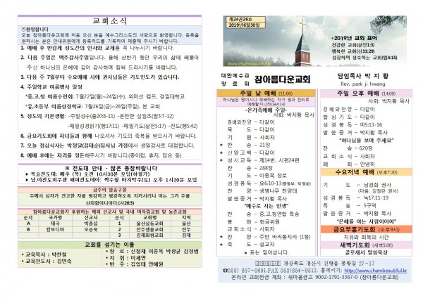 주보- 2019년 6월 30일 페이지 정보 작성자 참아름다운교회 댓글 0건 조회 10,395회 19-06-30 13:41 본문 주보- 2019년 6월 30일 목 록 답 변 이전글주보- 2019년 7월 7일 19.07.07 다음글주보- 2019년 6월 23일 19.06.23 댓글목록 댓글목록 등록된 댓글이 없습니다.