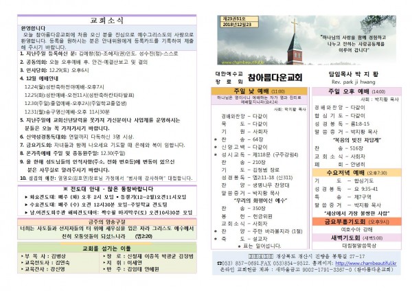 주보-2018년 12월 23일 페이지 정보 작성자 참아름다운교회 댓글 0건 조회 10,975회 18-12-26 10:42 본문 . 목 록 답 변 이전글주보- 2018년 12월 30일 19.01.01 다음글주보-2018년 12월 16일 18.12.18 댓글목록 댓글목록 등록된 댓글이 없습니다.