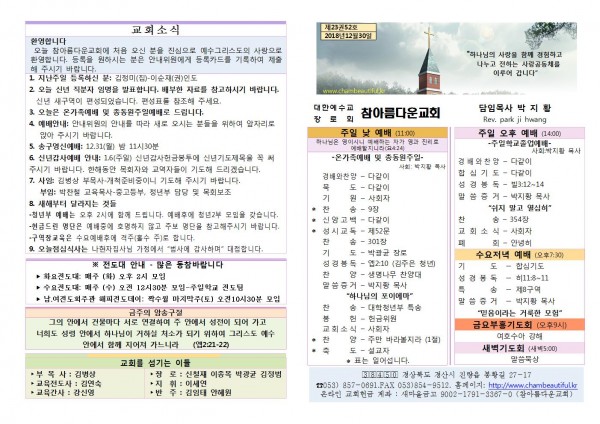 주보- 2018년 12월 30일 페이지 정보 작성자 참아름다운교회 댓글 0건 조회 10,671회 19-01-01 15:16 본문 주보- 2018년 12월 30일 목 록 답 변 이전글주보- 2019년 1월 6일 19.01.08 다음글주보-2018년 12월 23일 18.12.26 댓글목록 댓글목록 등록된 댓글이 없습니다.