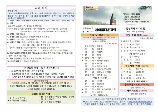 주보- 2019년 1월 6일 페이지 정보 작성자 참아름다운교회 댓글 0건 조회 10,671회 19-01-08 16:12 본문 주보- 2019년 1월 6일 목 록 답 변 이전글주보-2019년 1월 13일 19.01.13 다음글주보- 2018년 12월 30일 19.01.01 댓글목록 댓글목록 등록된 댓글이 없습니다.
