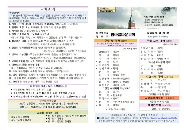 주보-2019년 1월 13일 페이지 정보 작성자 참아름다운교회 댓글 0건 조회 10,911회 19-01-13 13:34 본문 주보-2019년 1월 13일 목 록 답 변 이전글주보- 2019년 1월 20일 19.01.22 다음글주보- 2019년 1월 6일 19.01.08 댓글목록 댓글목록 등록된 댓글이 없습니다.