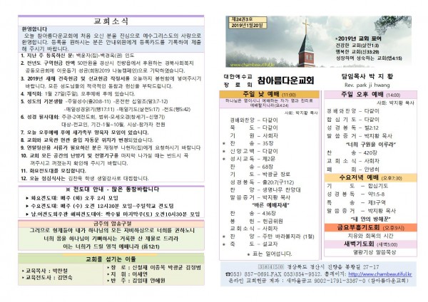 주보- 2019년 1월 20일 페이지 정보 작성자 참아름다운교회 댓글 0건 조회 10,833회 19-01-22 17:42 본문 주보- 2019년 1월 20일 목 록 답 변 이전글주보- 2019년 1월 27일 19.02.02 다음글주보-2019년 1월 13일 19.01.13 댓글목록 댓글목록 등록된 댓글이 없습니다.