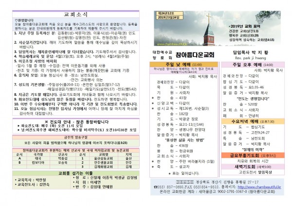 주보- 2019년 3월 24일 페이지 정보 작성자 참아름다운교회 댓글 0건 조회 11,203회 19-03-29 19:13 본문 주보- 2019년 3월 24일 목 록 답 변 이전글주보- 2019년 3월 31일 19.03.31 다음글주보- 2019년 3월 17일 19.03.17 댓글목록 댓글목록 등록된 댓글이 없습니다.