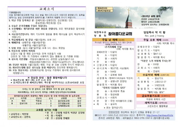 주보- 2019년 3월 31일 페이지 정보 작성자 참아름다운교회 댓글 0건 조회 11,107회 19-03-31 13:21 본문 주보- 2019년 3월 31일 목 록 답 변 이전글주보- 2019년 4월 7일 19.04.09 다음글주보- 2019년 3월 24일 19.03.29 댓글목록 댓글목록 등록된 댓글이 없습니다.