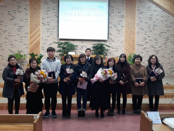 2018년 제1기 새가족 양육 수료식 페이지 정보 작성자 참아름다운교회 댓글 1건 조회 4,203회 작성일 18-11-27 14:28 본문 제1기 새가족 양육 수료자 이영옥 조혜지 제갈문 김옥자 김혜진 홍순옥 강다혜 허서윤 변태기 문관순(왼쪽부터) 목록 답변 이전글새가족 양육 수료식 18.11.27 다음글2018 구역별찬양경연대회- 사회자 18.11.20 댓글목록 댓글목록 김정란님의 댓글 김정란 작성일 18-12-10 14:32 귀하신 우리 새가족 양육반 수료식까지 오신 우리 성도님... 집사님... 권사님... 모두모두 축하드리며 축복합니다!!! 답변 삭제 귀하신 우리 새가족 양육반 수료식까지 오신 우리 성도님... 집사님... 권사님... 모두모두 축하드리며 축복합니다!!!